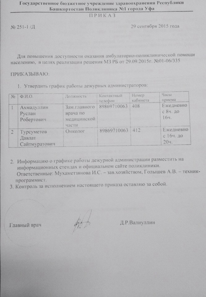 Документы ГБУЗ РБ Поликлиника №1 г. Уфа